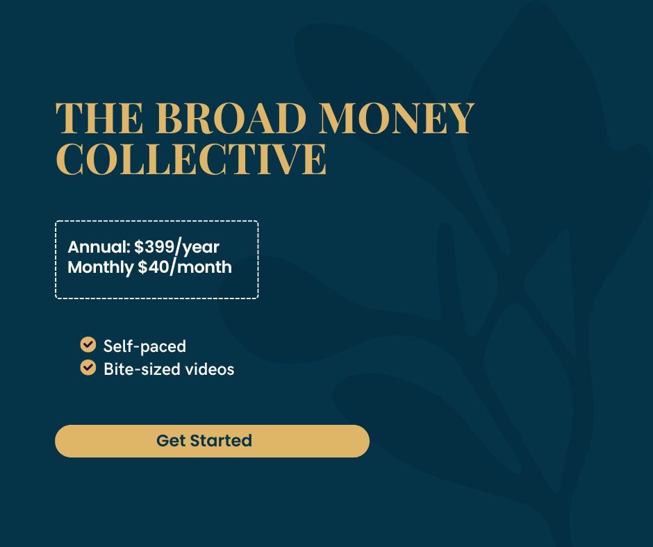 Ready to finally feel in control of your money and confident about the financial decisions you're making? The Broad Money Collective gives you the tools, support, and education to understand your money, build wealth, and make smarter choices - without the BS jargon, shame, or overwhelm.